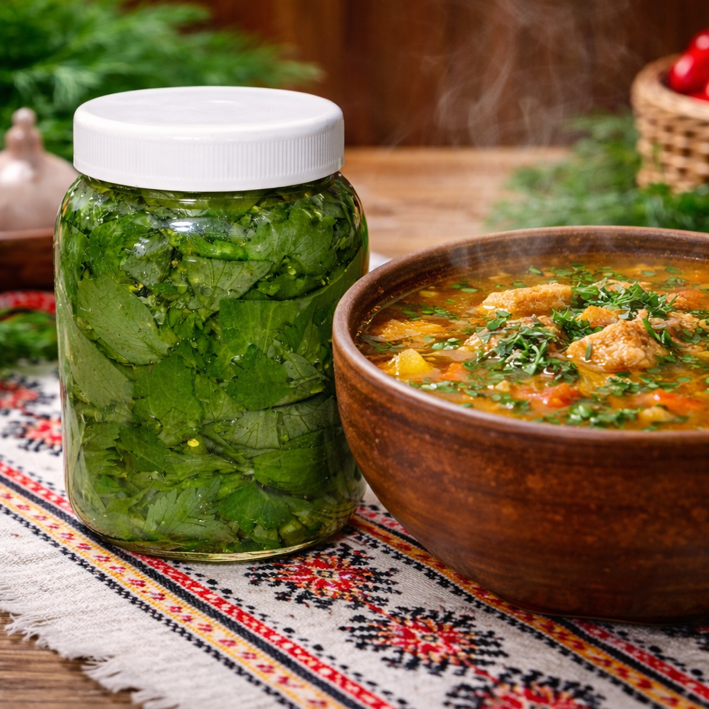 Leusteanul in otet si sare se adauga direct in ciorbe,