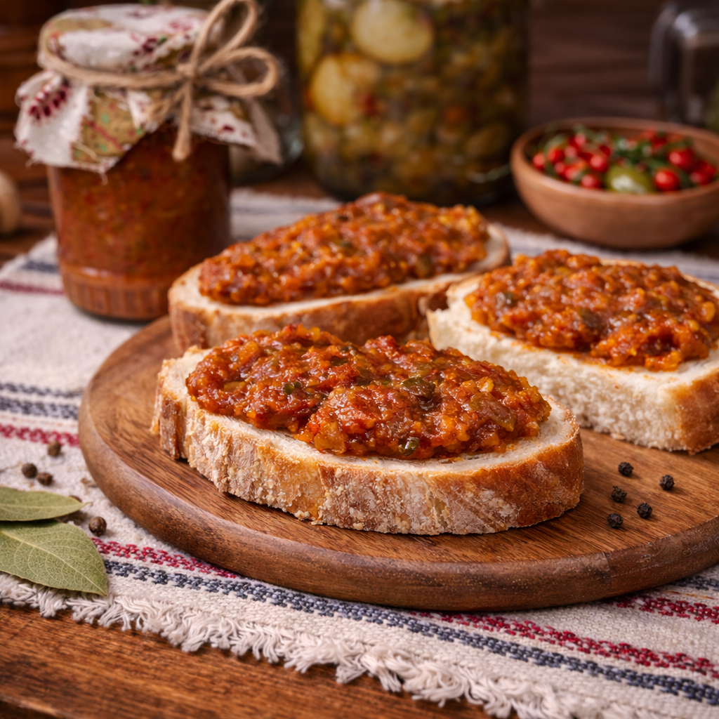 Zacusca cu vinete este ideala pe paine proaspata,